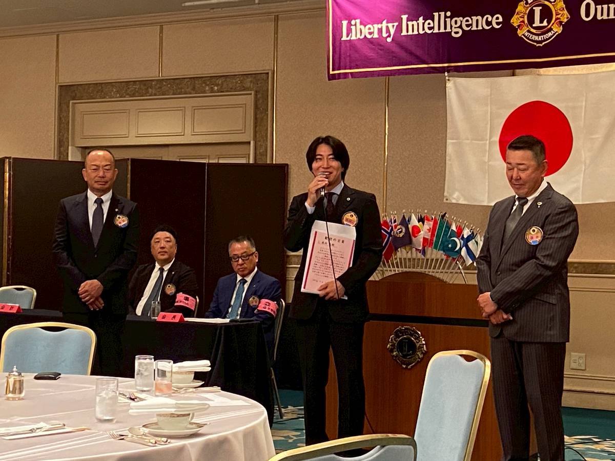 その後、会長 L伊東より歓迎の挨拶が行われ、新会員森岡大樹の入会式が行われました。