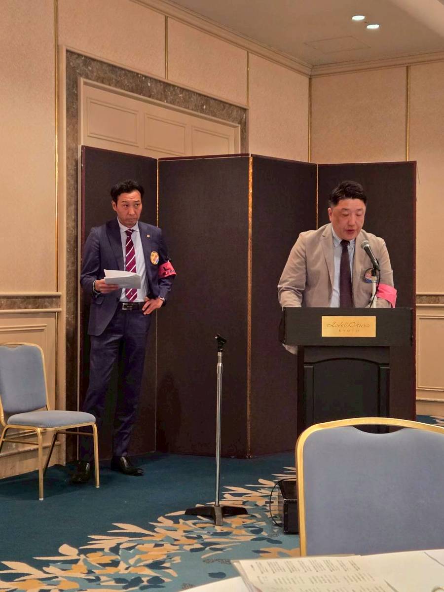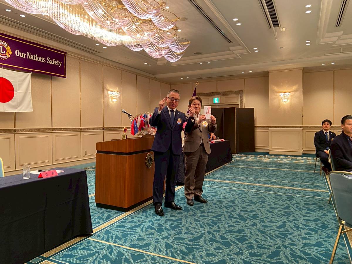 開会のゴングに続き、国歌「君が代」斉唱、「ライオンズクラブの歌」合唱が行われ、「ライオンズ道徳綱領」が朗読されました。