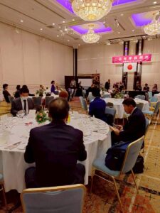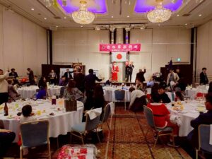 《第2部》18時より懇親会がスタート。計画委員長L森川友喜の司会のもと、「桃山ライオンズクラブの歌」合唱(ソングリーダー:L森岡正典、L森岡智子)に続き、第一副会長L小畠範彦より開宴の挨拶、前会長L畑田哲の乾杯でディナータイムが始まりました。