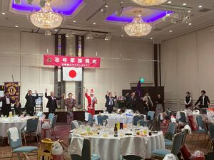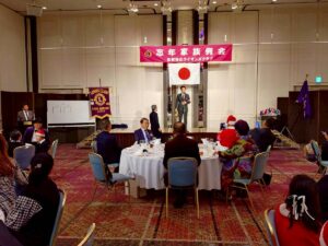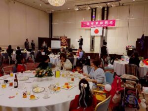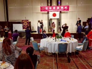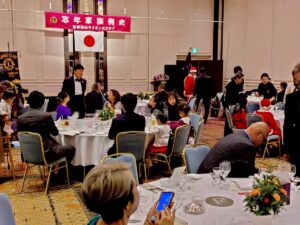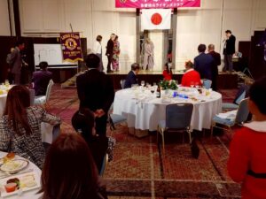 19時40分にはファイン・ドネーションの発表があり、19時50分に第二副会長L大濱育恵より閉宴の挨拶が行われました。