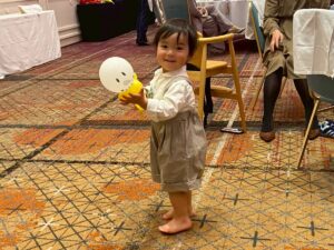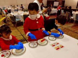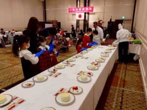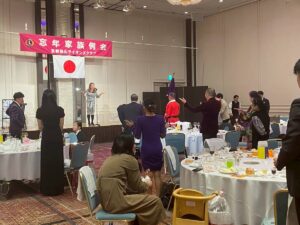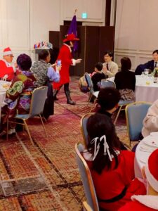 和やかにお食事を楽しんだ後、19時10分からは「クリスマス スペシャルバルーンショー」が披露されました。色とりどりのバルーンアートに会場は歓声に包まれました。さらにTT L振本による「桃山No.1決定戦」が行われ、会場は大いに盛り上がりました。