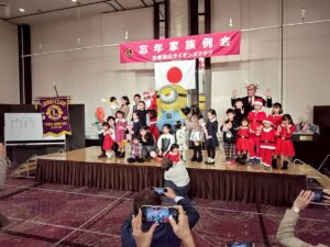 《第1部》17時30分より開会のゴングに続き、国歌「君が代」斉唱、「ライオンズクラブの歌」合唱が行われました。ソングリーダーはL小野嘉広、L今西彩夏が務めました。