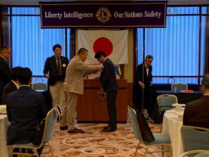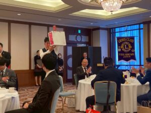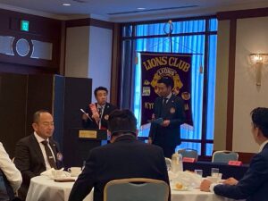 L森川会員副委員長の進行のもと、新会員入会式が執り行われました。L伊東会長よりラペルピンと入会キット一式が授与され、新たな仲間を迎えることができました。
